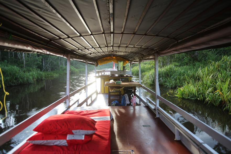 While it is no luxury cruise ship, the kelotok is well-equipped for cleanliness and comfort. There is even a chef on board to whip up delicious meals so you will have plenty of energy to explore the rainforest. In the evening, the boat crew will set up the mattress, pillow and mosquito net for you. There are two levels on the kelotok – crew will be sleeping at the lower level while you will be sleeping at the top level.