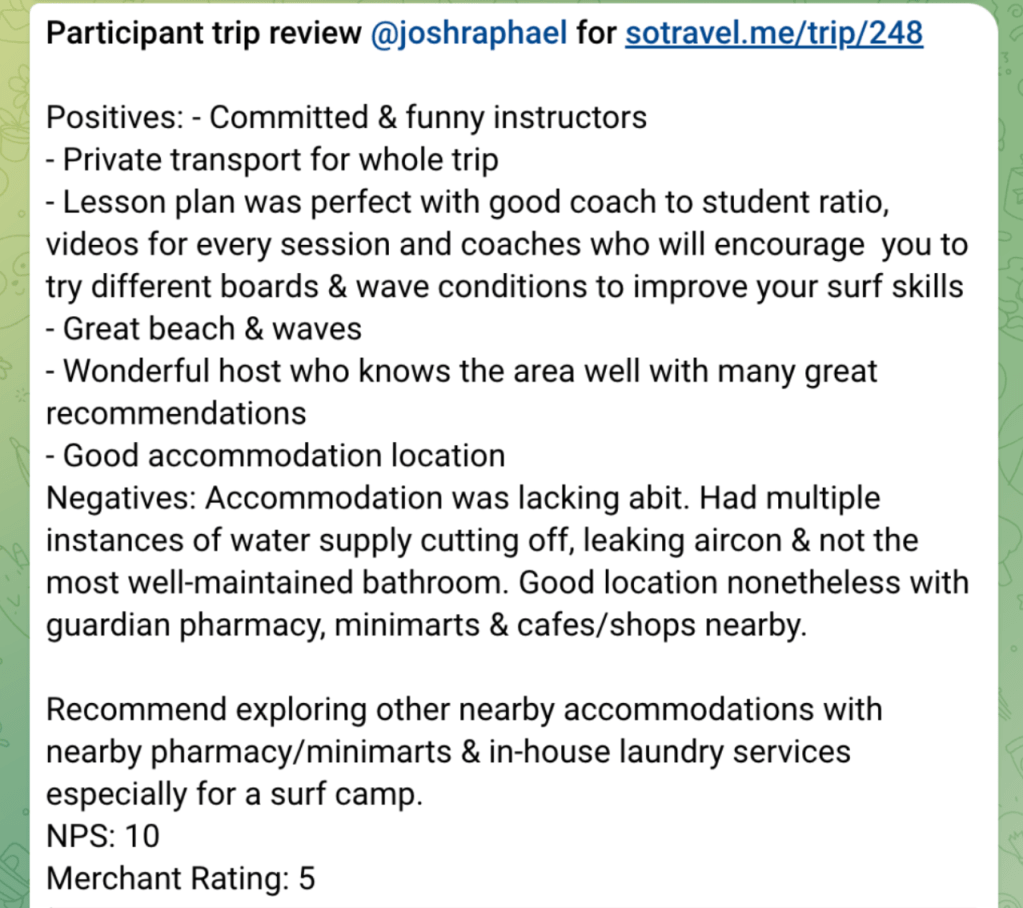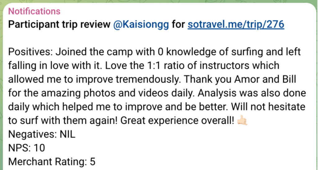 You will have high-intensity surf sessions here — one on the first day, then two per day for the next four days, so there’s no doubt you’ll see a lot of progress by the end. It’s our ONLY surf camp currently offering a 1:1 instructor-to-student ratio, and with the highest number of sessions, this camp is pricier. But is it worth it? Hear it straight from our stoked participants!