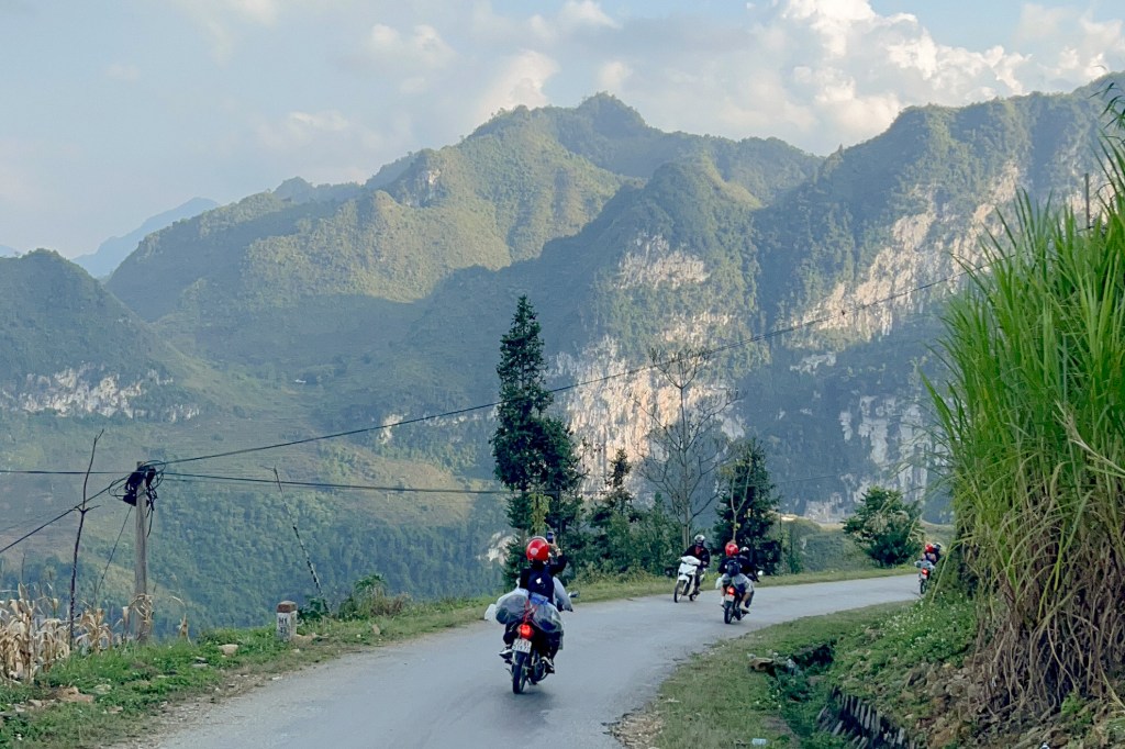 Coming into the trip, I had zero expectations and knew nothing about what I was going to do (I simply didn’t do my due diligence and was in for a surprise). All I knew was that I was going to ride a motorcycle for days. I had no idea that each day would end with “happy water”—rice wine disguised in plastic water bottles. This unexpected ritual, combined with karaoke, turned into a fun and cute bonding session. The warm locals always made sure our shot glasses were full, and I had a blast cheering as we blended the Ha Giang “Một, Hai, Ba, Dzô” with our own renditions. These lively evenings added a unique and memorable twist to the adventure.